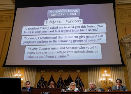 WASHINGTON (Reuters) -At least five congressional Republican allies of Donald Trump sought White House pardons after supporting his attempts to overturn his 2020 election defeat, witnesses on Thursday told the U.S.