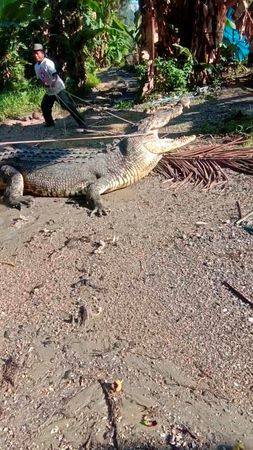 The crocodile’s capture was lauded by others in the village of Ambau Indah.