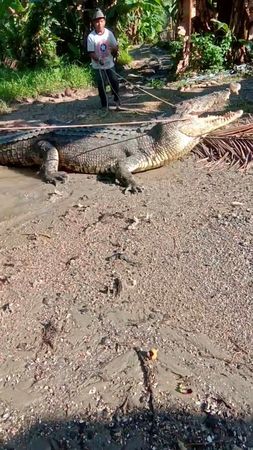 JAKARTA (Reuters) – Fellow villagers have praised an Indonesian man for capturing a crocodile longer than 4 metres (13 ft) on the island of Sulawesi using just a rope.