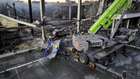 KREMENCHUK, Ukraine (Reuters) – Firefighters on Tuesday searched the rubble of a Ukrainian shopping mall where authorities said 36 people were missing after a Russian missile strike that killed at least 18, as a regional governor reported another “enemy attack” further east.