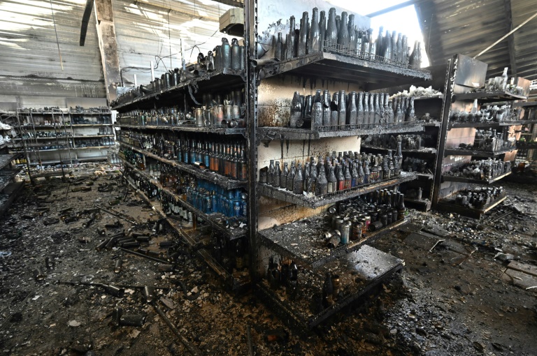 A giant crane was working near the site of the impact and in the rubble-strewn parking area shopping trolleys piled with clothes and household goods lay abandoned.