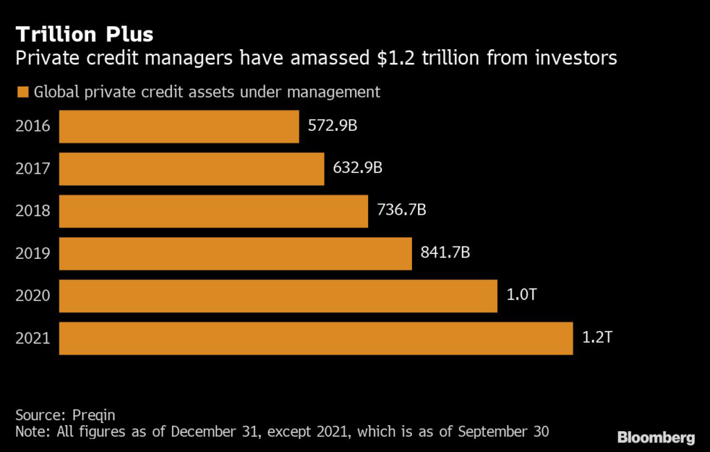(Bloomberg) — A dirty little secret in a $1.2 trillion world of credit is getting exposed as the Wall Street rout deepens: Private debt is now the cheaper financing option for big-ticket leveraged borrowers than the ailing public market — upending industry norms.