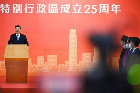 HONG KONG (Reuters) -Hong Kong has overcome its challenges and “risen from the ashes”, China’s President Xi Jinping said on Thursday, as he arrived in the former British colony to celebrate 25 years since its return to Chinese rule.