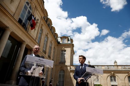 PARIS (Reuters) -French President Emmanuel Macron told new Australian Prime Minister Anthony Albanese he wanted to focus on the future as they try to rebuild relations badly strained by his predecessor’s decision to ditch a submarine contract with Paris.