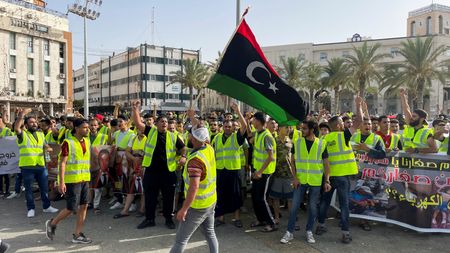 In Tripoli’s Martyrs’ Square, several hundred people gathered to shout slogans demanding electricity, criticising armed factions and politicians and demanding elections in the capital’s biggest protests against the ruling elite for years.