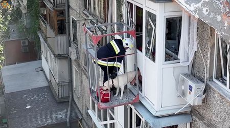 The missile fell in a wooded area between residential tower blocks. Police and military cordoned off an area a few meters around the missile and told onlookers to stand back. Outgoing artillery fire and several large explosions were heard in central Kramatorsk earlier in the evening.