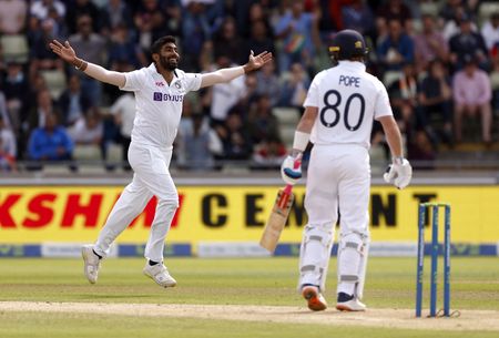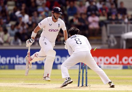 BIRMINGHAM, England (Reuters) -Joe Root and Jonny Bairstow smashed unbeaten fifties to boost England’s hopes of pulling off a record chase in the rearranged fifth test against India at Edgbaston on Monday.