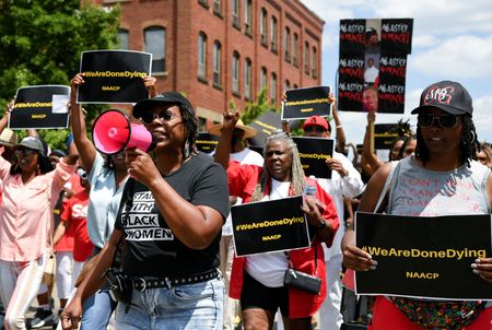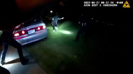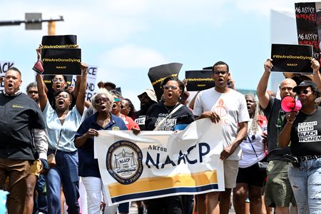 AKRON, Ohio (Reuters) -Video released on Sunday showed eight police officers in Akron, Ohio, were involved in a shooting that killed an unarmed Black man whose body was found with some 60 gunshot wounds after he fled a traffic stop last week.