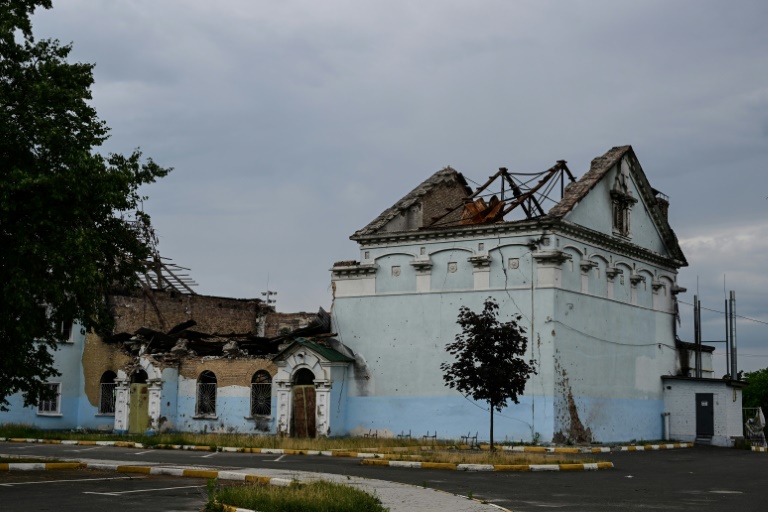 In early July, scars from the war are still highly visible — broken windows, shell craters and gaping holes in walls.