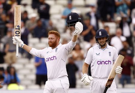 BIRMINGHAM, England (Reuters) -Joe Root and Jonny Bairstow smashed unbeaten hundreds to pull off England’s record chase of 378 against India for a series-levelling seven-wicket victory on Tuesday in the re-arranged fifth test.