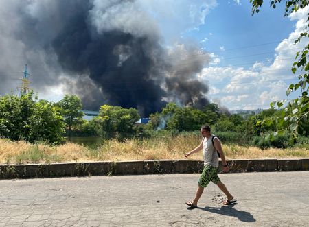 KYIV/KRAMATORSK, Ukraine (Reuters) – Ukraine has so far staved off any major Russian advance into the north of its Donetsk region, but pressure is intensifying with heavy shelling on the city of Sloviansk and nearby populated areas, the Ukrainian military said on Wednesday.