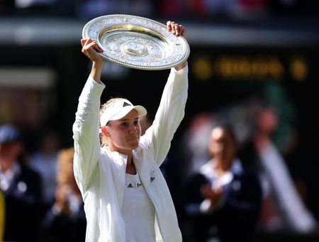 LONDON (Reuters) -In a year when Russian players were banned from Wimbledon, Moscow-born Elena Rybakina rallied from a set down to defeat Tunisia’s Ons Jabeur 3-6 6-2 6-2 on Saturday to become the first player from Kazakhstan to win a Grand Slam singles title.
