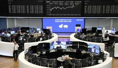 (Reuters) – European shares fell on Monday, gripped by investor concerns over energy supply crunch, while fresh COVID-19 cases in China and the discovery of a new coronavirus variant dented commodity-linked stocks.