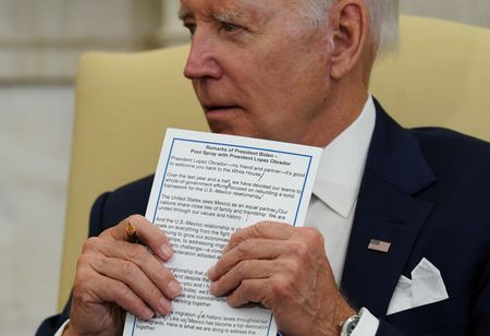 WASHINGTON (Reuters) -Mexico on Tuesday pledged to spend $1.5 billion to beef up its northern border as its leader met with U.S. President Joe Biden, who faces attacks from Republicans over his handling of immigration on the United States’ southern flank.