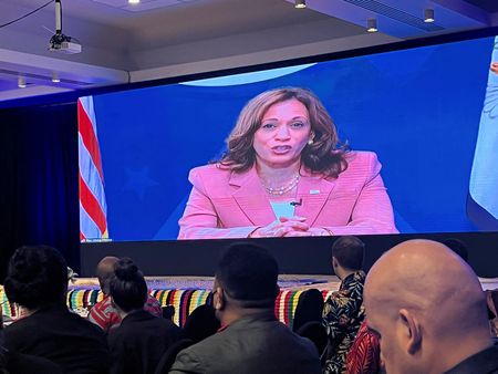 U.S. Vice President Kamala Harris, in a video address to the Pacific Islands Forum in Suva on Wednesday, said U.S. funding for Pacific islands would be tripled to $60 million a year for a decade, subject to approval by Congress.
