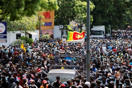 COLOMBO (Reuters) – Barely hours after Sri Lankan President Gotabaya Rajapaksa fled the country on Wednesday, hundreds of people were demanding the resignation of the prime minister as well and fighting street battles with riot police.