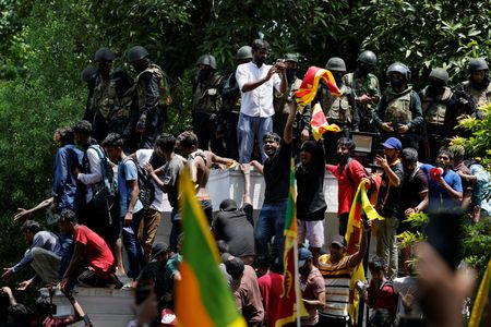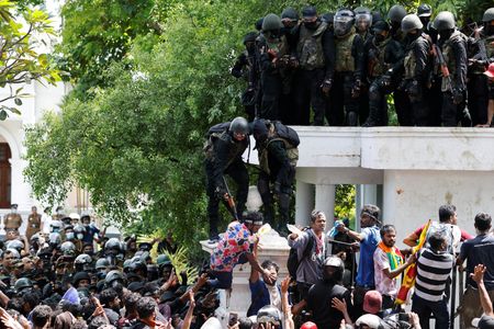 COLOMBO (Reuters) -Barely hours after Sri Lankan President Gotabaya Rajapaksa fled the country on Wednesday, hundreds of people were demanding the resignation of the prime minister as well and fighting street battles with security forces, some armed with assault rifles.