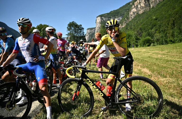 Broadcasters cut away to a view of the Alps where holiday crowds were enjoying a sunny day out in 24 degrees Celsius (75 degrees Fahrenheit) temperatures for the 15 minutes or so that the Tour de France stage 10 was held up.