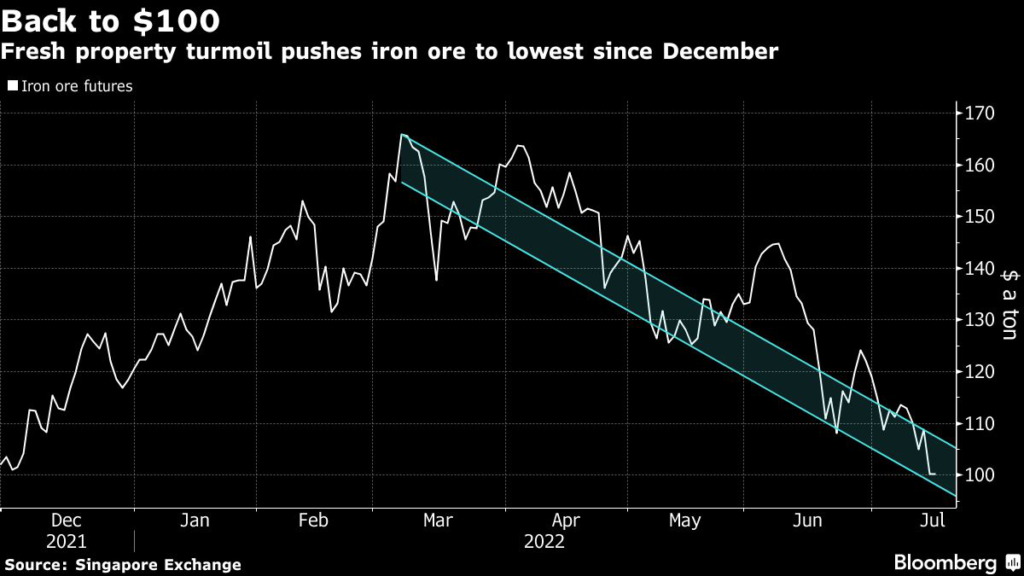 Iron ore slumped more than 8% on Thursday, falling below $100 a ton for the first time since December. A year ago, iron ore was trading comfortably above $200 a ton, with China’s wave of Covid-era stimulus feeding a boom for property and the steel market.