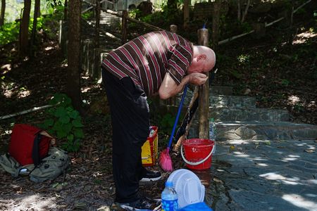 HONG KONG (Reuters) – A Catholic priest launched a three-day protest on Thursday in sweltering heat outside a Hong Kong maximum security prison, demanding the release of activists and democratic politicians held under a sweeping national security law.