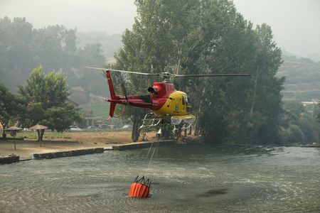 In Spain, helicopters dropped water on the flames as heat above 40 Celsius (104 Fahrenheit) and often mountainous terrain made the job harder for firefighters.