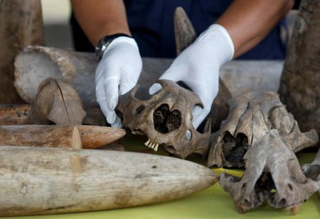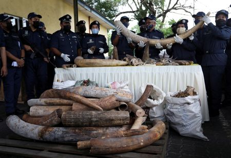 KLANG, Malaysia (Reuters) – Malaysian authorities on Monday seized a massive haul of trafficked animal parts, including elephant tusks, rhino horns, pangolin scales and tiger bones worth around 80 million ringgit ($17.9 million), officials said at a news briefing.