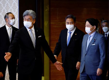 Park smiled as he bumped elbows at the meeting with Hayashi on his first trip to the Japanese capital since South Korea’s new President Yoon Suk-yeol took office in May.