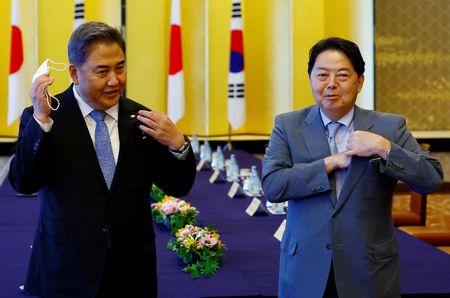 SEOUL (Reuters) -South Korean Foreign Minister Park Jin met in Tokyo on Monday with his Japanese counterpart, carrying a message of reconciliation in hopes that the neighbours can overcome historical disputes and repair strained ties.