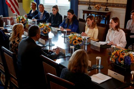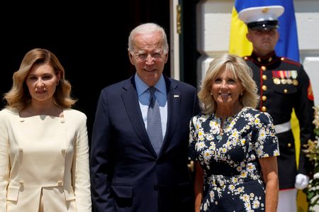 WASHINGTON (Reuters) -U.S. President Joe Biden, with flowers in hand, and first lady Jill Biden welcomed Ukraine’s first lady, Olena Zelenska, to the White House on Tuesday for a visit ahead of her address to Congress on Wednesday.