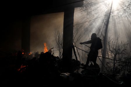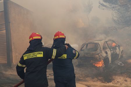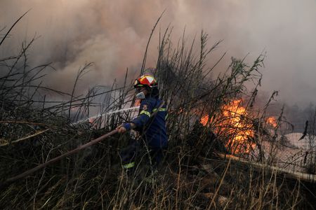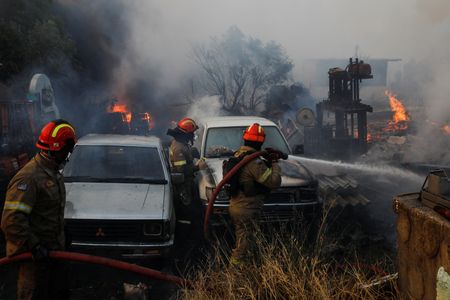 ATHENS (Reuters) -Hundreds of firefighters on Wednesday battled a wildfire that raged for a second day in mountains near Athens, burning homes and cars and forcing the evacuation of at least nine settlements and a hospital.