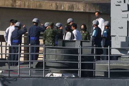 SUAO, Taiwan (Reuters) -Taiwan President Tsai Ing-wen boarded a naval warship on Tuesday for only the second time in her six years in office, where she lauded the military’s determination to defend the island while overseeing its largest annual naval and air exercises.