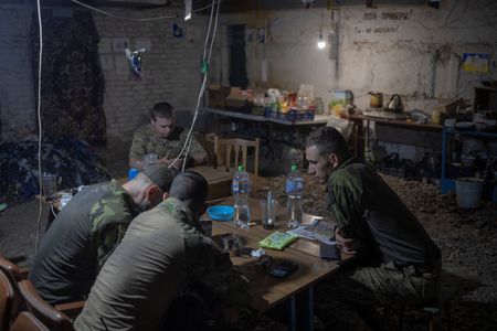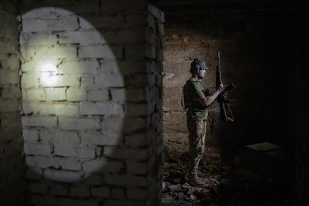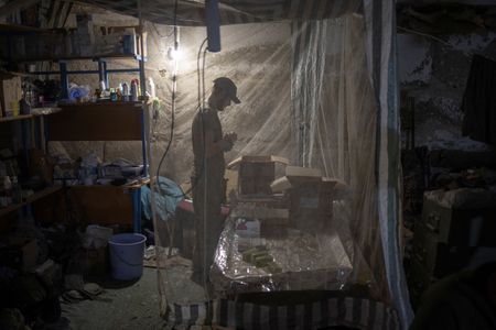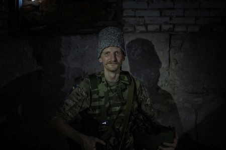 THE IZIUM FRONT, Ukraine (Reuters) – Barely a kilometre from Russian positions defending the captured eastern city of Izium, Ukrainian and foreign fighters hunker in a dank basement.