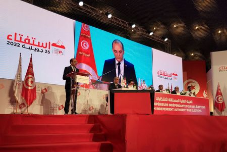 TUNIS (Reuters) – A new Tunisian constitution giving far more power to President Kais Saied passed in a referendum with a 30.5% turnout, the electoral commission said on Tuesday, tightening his grip in what critics fear is a march to a new era of autocracy.