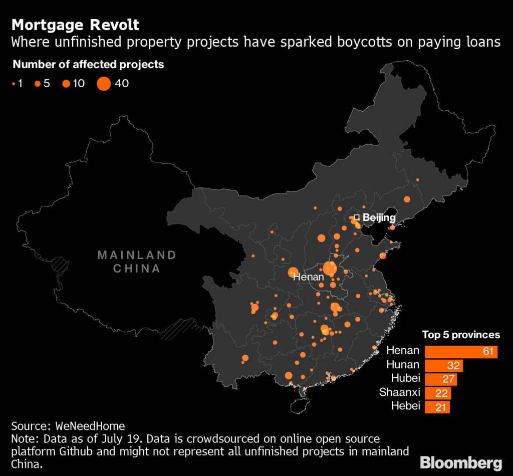 (Bloomberg) — China is considering a plan to seize undeveloped land from distressed real estate companies, using it to help finance the completion of stalled housing projects that have sparked mortgage boycotts across the country, according to people familiar with the matter.