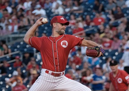 During the fourth inning, a heavy downpour caused a delay of about 40 minutes.