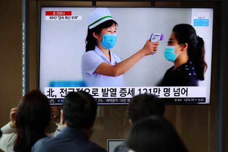 SEOUL (Reuters) – North Korea reported no new fever cases on Saturday for the first time since its acknowledgement in mid-May of a COVID-19 outbreak in the isolated country, state-run media reported.