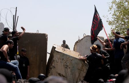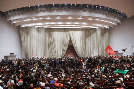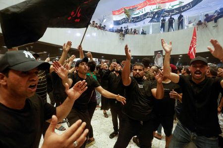 BAGHDAD (Reuters) -Thousands of supporters of Shi’ite populist cleric Moqtada al-Sadr stormed Baghdad’s fortified government zone and broke into parliament on Saturday for the second time in a week, leaving at least 125 people injured and escalating a political stand-off.