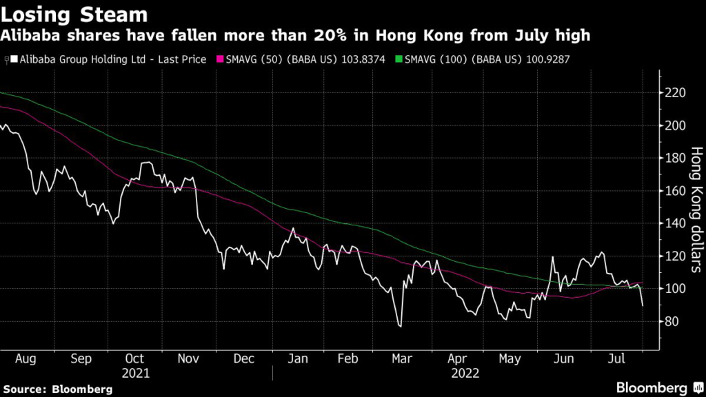 (Bloomberg) — Alibaba Group Holding Ltd. fell on Monday amid escalating concerns that the stock may be booted off American stock exchanges for failing to comply with US disclosure rules.