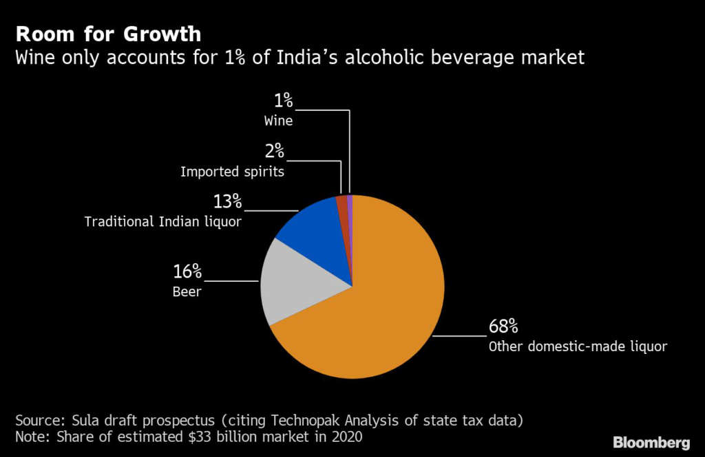 In its draft prospectus, Sula claims that India is the world’s third-largest market for alcoholic beverages, at $33 billion in 2020, but wine only accounts for 1%.