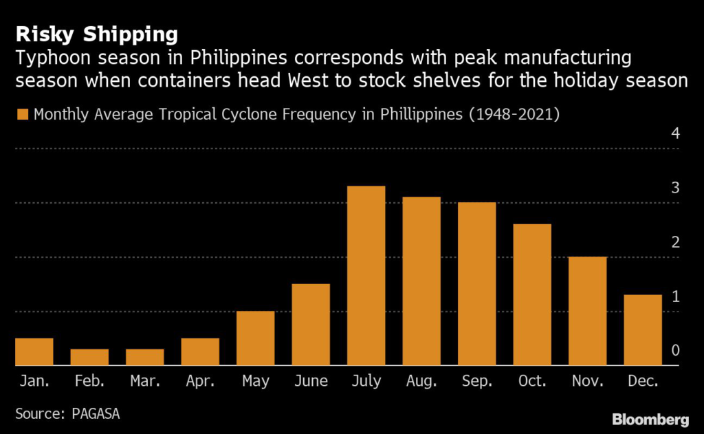 Three typhoons made it far enough west to scatter ships out of ports in Hong Kong and Shanghai in 2021, causing major supply-chain disruptions.