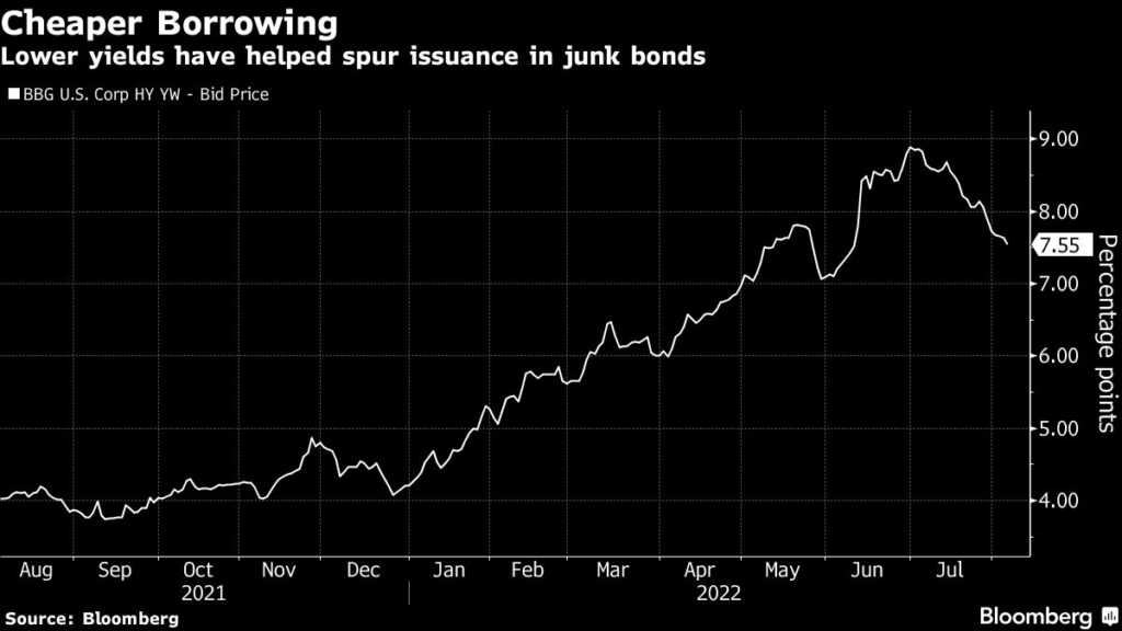 (Bloomberg) — Blue chip and junk-rated companies are lining up to borrow again in US debt markets as recession fears wane and yields drop.
