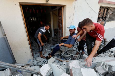 GAZA/JERUSALEM (Reuters) -Israeli air strikes pounded Gaza while the militant Islamic Jihad group fired hundreds of rockets into Israel on Saturday as a cross-border clash continued into a second day, killing at least six people, including four children.