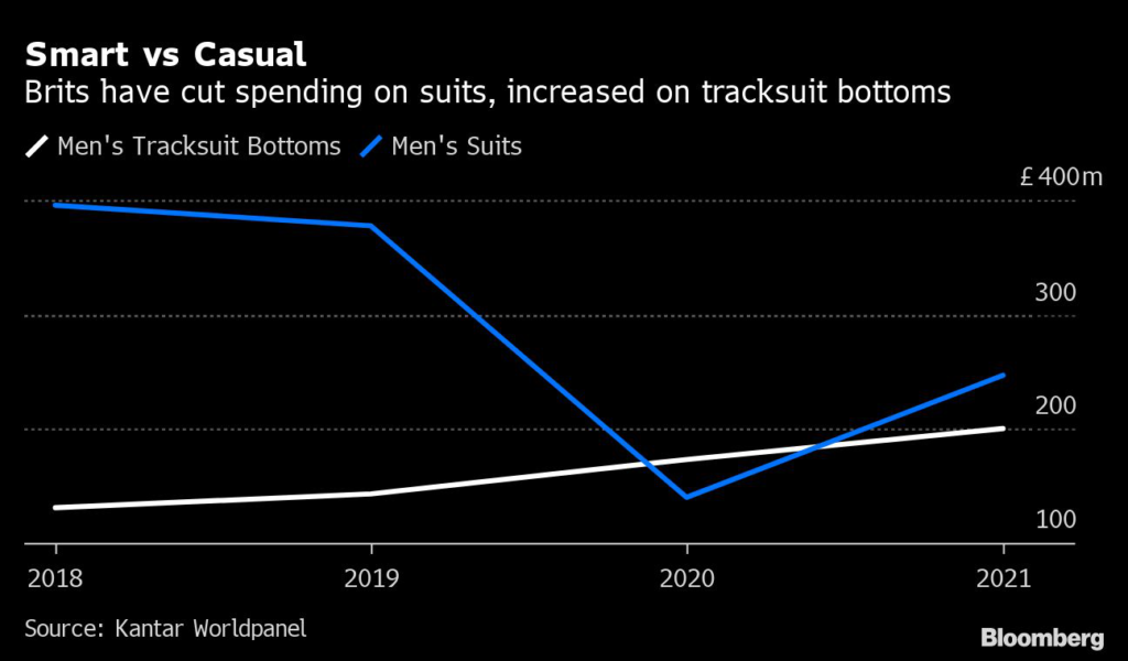 It now tracks prices of formal jackets or blazers instead. Marks & Spencer Group Plc cut the number of stores selling suits last year to 110 out of its 254 large locations. The retailer highlighted “the relaxation of formalwear” when it unveiled a collection of smart-separates for the England men’s football team this week, avoiding the “structured suit, shirt and tie uniform.”