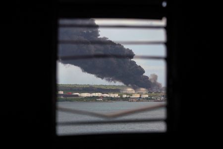 HAVANA (Reuters) – Cuba sought on Sunday to bring under control a fire at its main oil storage facility that has killed one firefighter, drawing on help from Mexico and Venezuela to fight the raging flames.