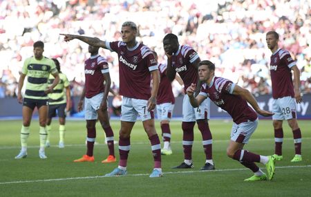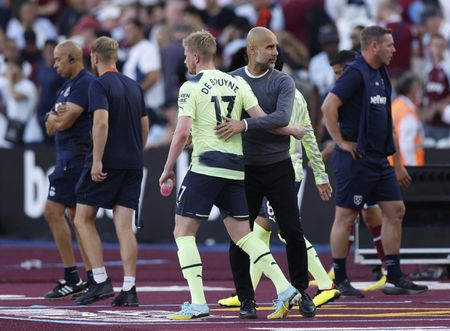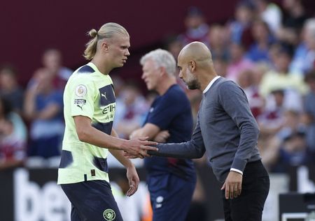 LONDON (Reuters) -New Manchester City signing Erling Haaland marked a fine Premier League debut by scoring in each half as the champions began their title defence by strolling to a 2-0 victory over West Ham United at the London Stadium on Sunday.