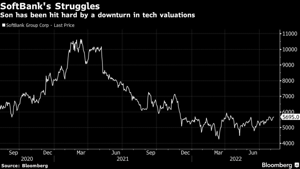 SoftBank and Son are now trying to wait out the technology slump so that they can extract a return on their $32 billion purchase of chip designer unit Arm Ltd.