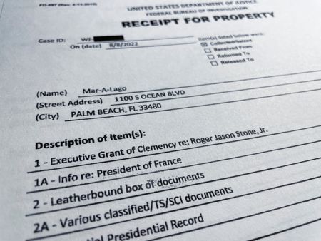 (Reuters) – FBI agents in this week’s search of former U.S. President Donald Trump’s Florida home removed 11 sets of classified documents including some marked as top secret, the Justice Department said on Friday, while also disclosing it had probable cause to conduct the search based on possible Espionage Act violations.