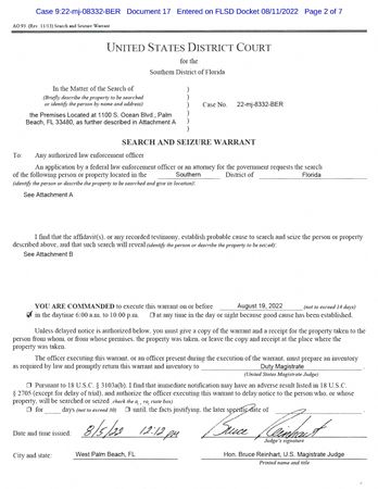 magistrate judge and accompanying documents released four days after agents searched Trump’s Mar-a-Lago residence in Palm Beach. The Espionage Act, one of three laws cited in the warrant application, dates to 1917 and makes it a crime to release information that could harm national security.