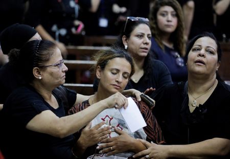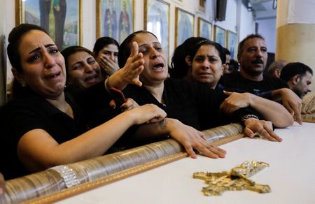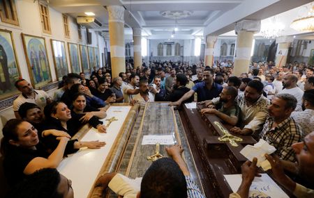 CAIRO (Reuters) -An electrical fire swept through an Egyptian Coptic Christian church during Mass on Sunday, causing a stampede and killing at least 41 people, most of them children and many suffering from smoke inhalation.