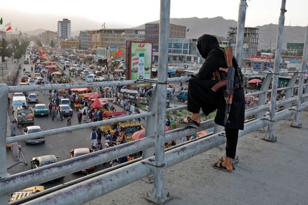 KABUL (Reuters) -The Taliban and their supporters waved the group’s black and white flag on the streets of Afghanistan on Monday to celebrate a year since they marched into the capital and took power after a stunning series of battlefield victories.